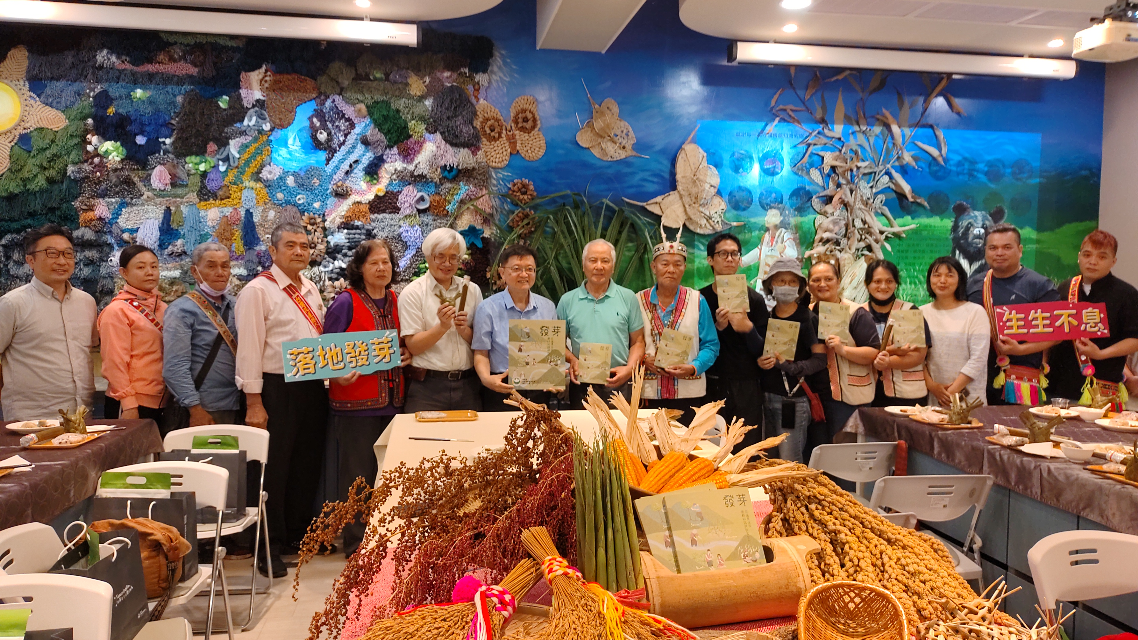 In order to push the promotion and application of the investigation results of aboriginal farming knowledge and food culture, the HDARES of the Ministry of Agriculture published the book "Sprouting". A new book launch event was held on April 17, and the book was presented to the five tribes interviewed for appreciation of their selfless sharing. The tribesmen were led to visit the indigenous crop conservation nursery at the HDARES, where they witnessed their traditional crops taking root, sprouting and growing.