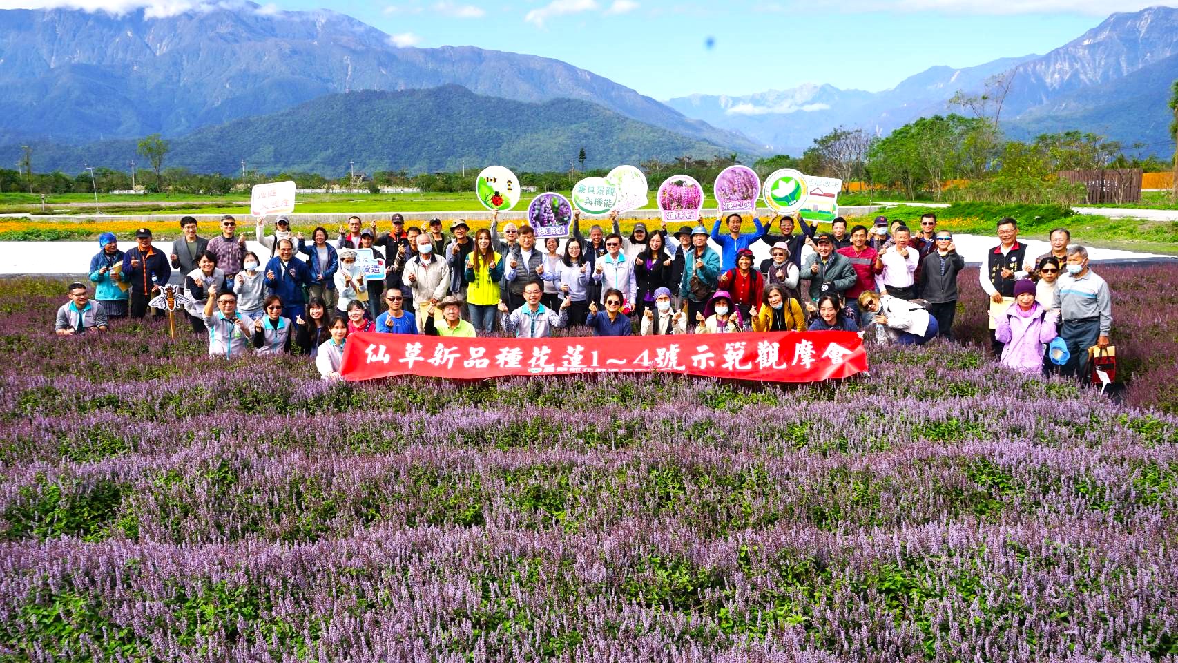 On December 30, 2024, the Hualien District Agricultural Research and Extension Station held its very first “New Grass Jelly Variety Demonstration and Observation Session” at the Hualien Organic Agricultural Research Center. This event showcased four newly bred grass jelly varieties developed at the Hualien Station, featuring a sea of blooming Mesona flowers across the research center grounds. The flowers began blossoming in late October, continued through Christmas, and even into the New Year, revealing strikingly layered hues among the new varieties.