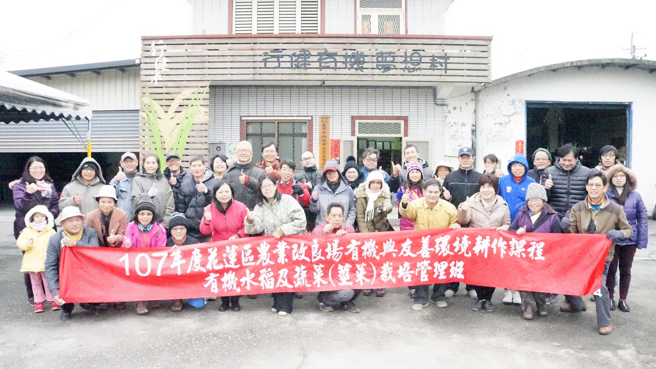 行政院農業委員會花蓮區農業改良場為配合推動有機及友善環境耕作政策,協助花蓮宜蘭友善環境耕作審認團體推廣,擴大有機及友善耕作面積, 107 年 2 月 12 日於保證責任宜蘭縣行健有機農業生產合作社辦理有機水稻及蔬菜 ( 莖菜類 ) 栽培管理班,有 47 位宜蘭地區農友踴躍參與,均表示受益良多。